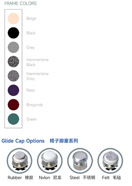 ● 椅子腳塞可以是尼龍,橡膠, 毛氈或者不銹鋼底以適用于不同的教室地板